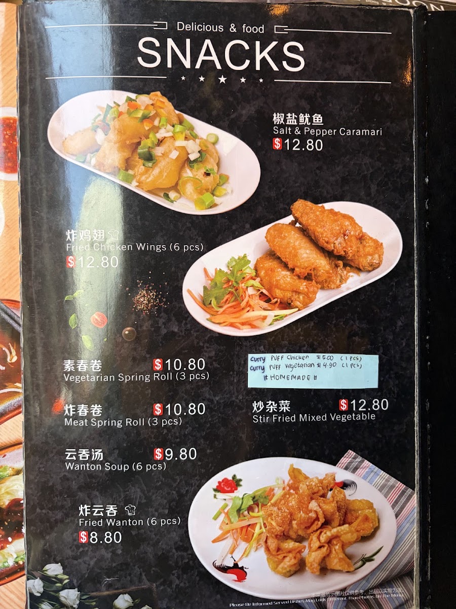 Chicken, fish balls, fish cake, vegetable, bean sprout, dried garlic, dried onion, coriander